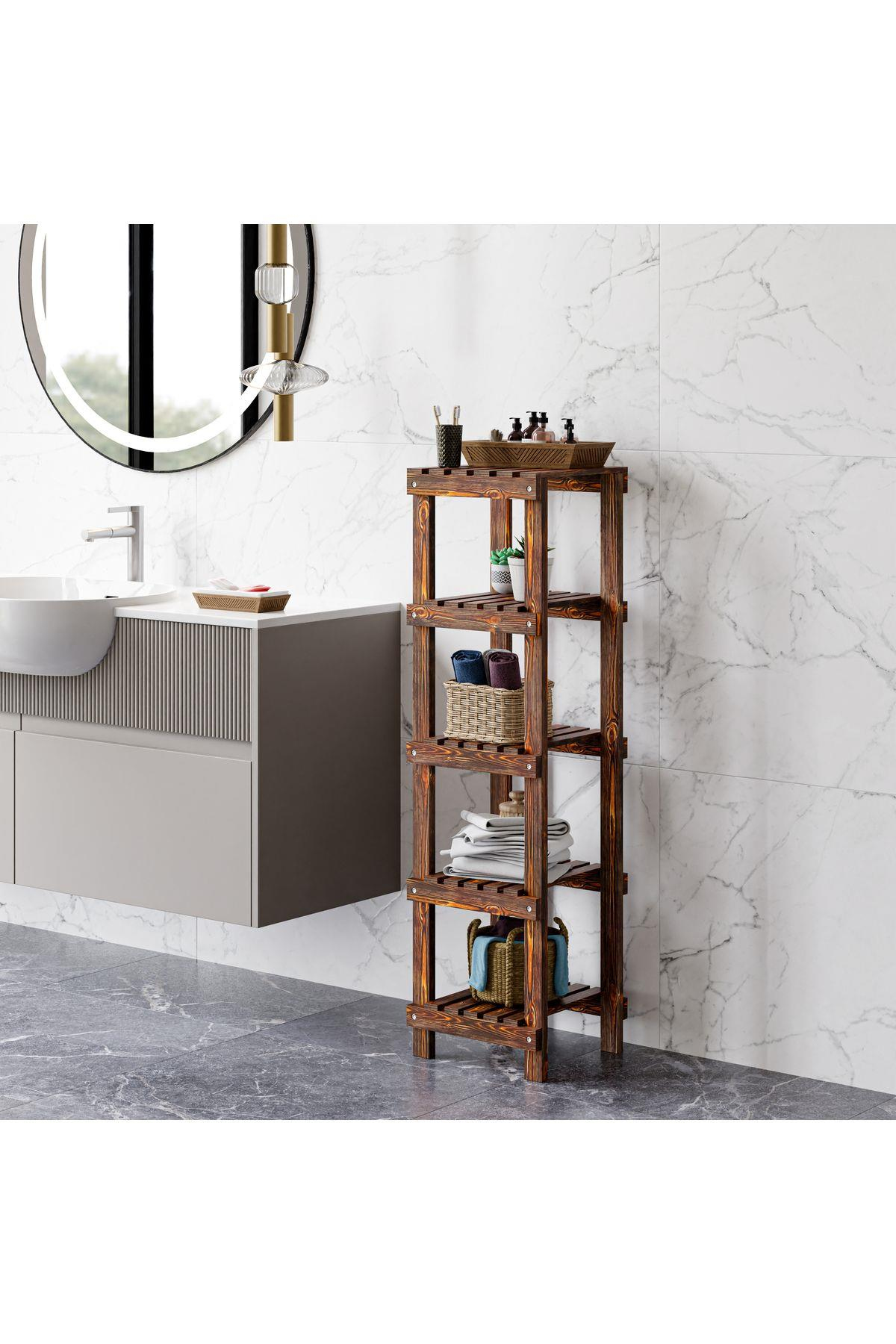 Ahşap 5 Raflı Banyo Rafı Çok Amaçlı Banyo Düzenleyici Raf Ykm Mob114