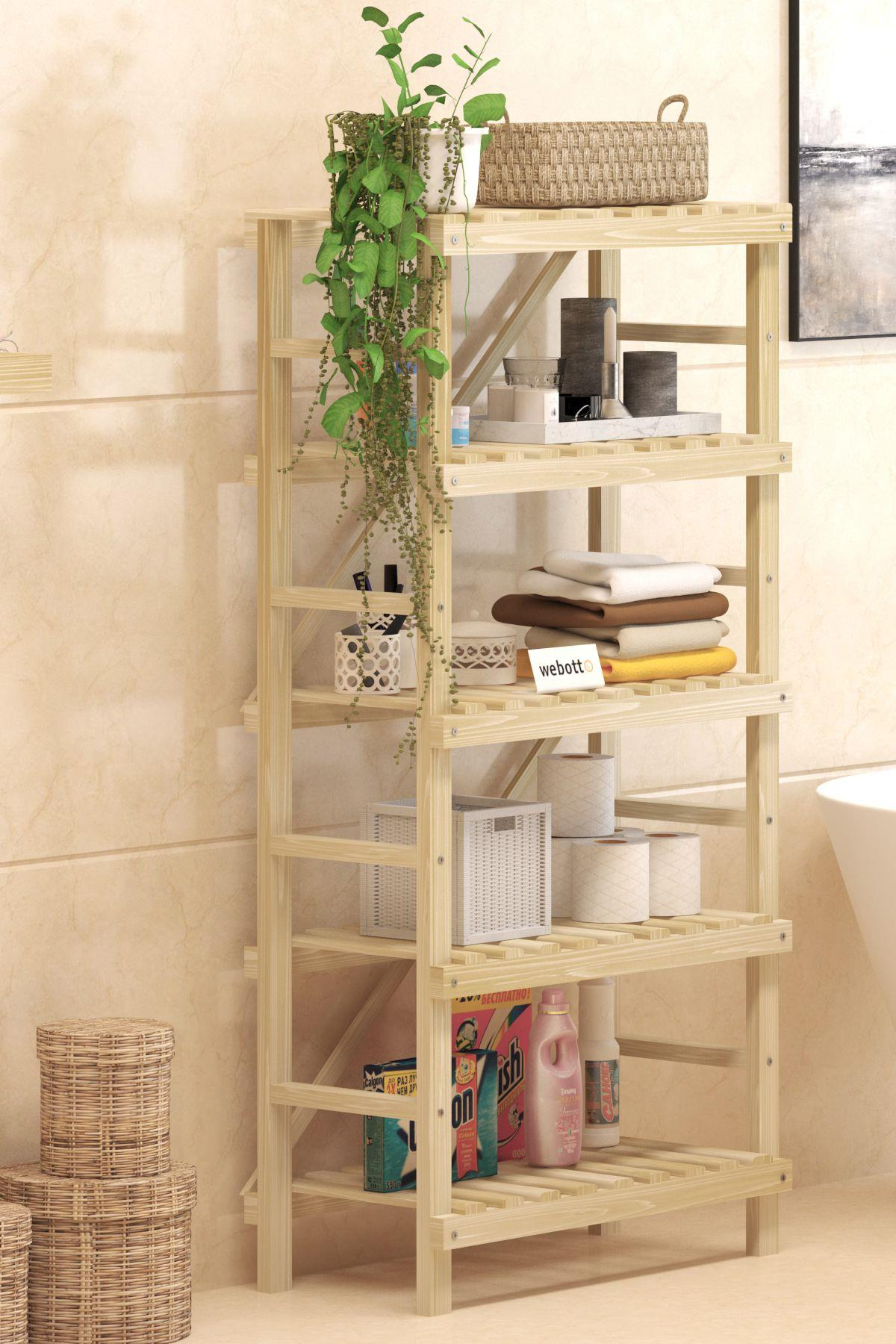 Banyo Dolabı Ahşap 5 Raflı Banyo Düzenleyici Çok Amaçlı Dolap czg nat mob200