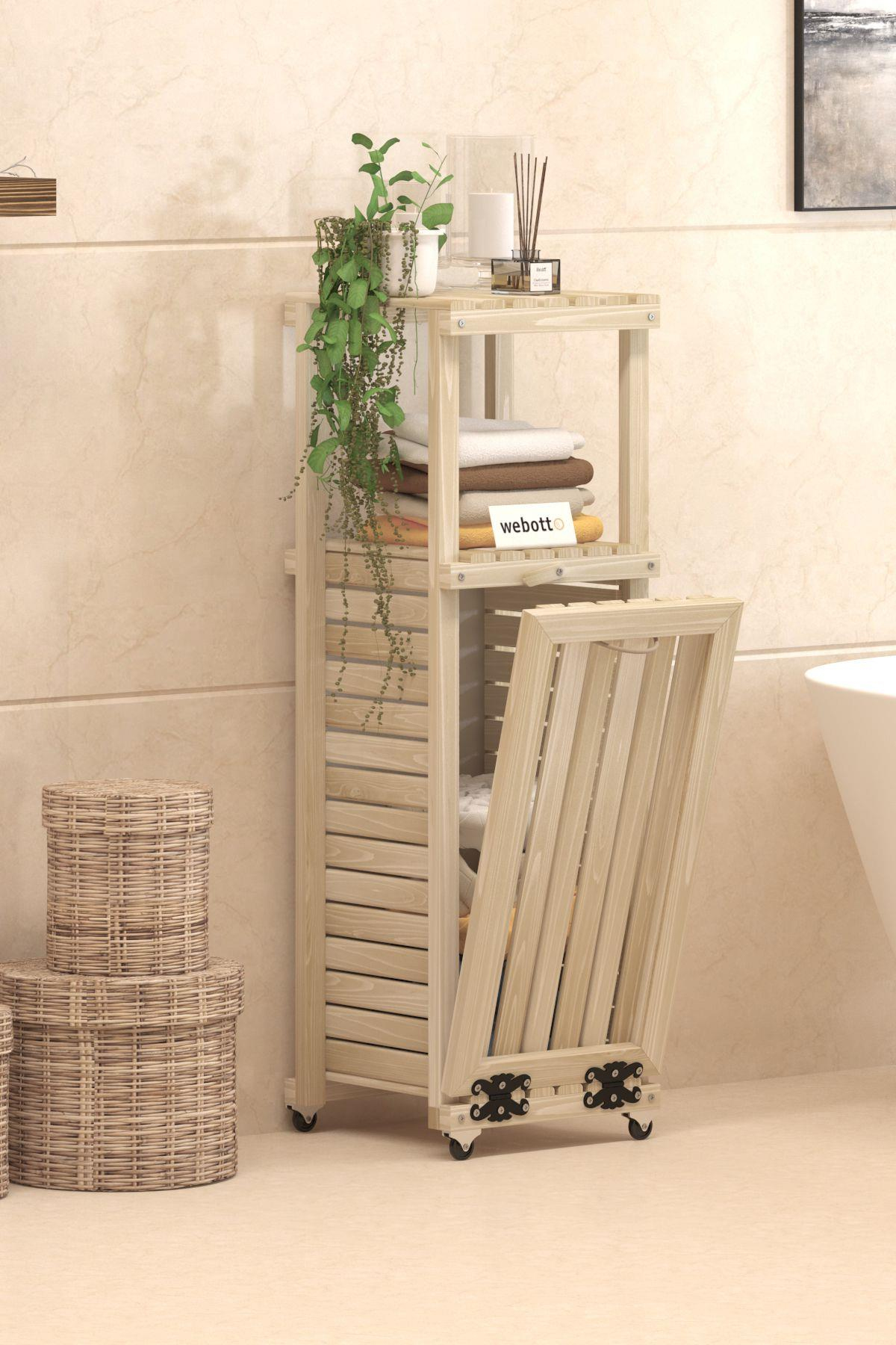 Tekerlekli Kirli Sepeti Banyo Dolabı 2 Raflı Çamaşır Sepeti Banyo Düzenleyici Organizer %100 doğal masif ağaçtan üretilmiştir. ; Rustik iskandinav yapısı ve modern görünümü ile bulunduğu alana şıklık ve zarafet katar. ; Tekerlekleri sayesinde istediğiniz alana kolaylıkla çekebilirsiniz.Kirli sepeti olarak alt bölümünü kullanabilir, üst raflarında da bakım ürünlerinizi ve dekoratif ürünlerinizi yerleştirerek banyonuza hava katabilirsiniz. ; Doğal ahşap olması sebebiyle suya ve neme dayanıklıdır.Nemli bir bez ile silebilirsiniz. ; ; Ahşap yapısı gereği ton, desen farklılıkları çok az da olsa olabilir.Her ağaç kendine özgüdür. ; ; Demonte gönderilmektedir.Kurulum şeması ve aparatları paket içerisinde bulunmaktadır. ; Kurulumu kolaydır.Sök-Tak yapabilir ve taşıyabilirsiniz. ; Ürün ölçüleri: yükseklik 90cm genişlik 30cm derinlik 30cmdir.Kirli sepeti alanı 25x60cmdir.;
